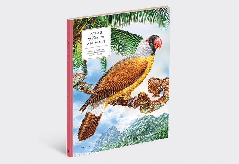 In this book, award-winning poet Radek Malý tells the stories of fortyone extinct species and studies the causes of their sad demise. The large-format Atlas of Extinct Animals is supplemented with beautifully expressive full-page illustrations by gifted artist Jiří Grbavčič and detailed pictures by renowned scientific illustrator Pavel Dvorský. The gorgeous, detailed depictions and descriptions of species and their fates can only serve as a reminder and as a warning of how much life has already disappeared from the Earth. The atlas also shows that the disappearances continue. Page by page it nears the present day and ultimately introduces creatures that still existed a few years ago, like the Zanzibar leopard (until 1996) and the Chinese river dolphin (until 2007). In the end, we are left with a bitter question: Which creature will next be added to this atlas? This book was selected by White Ravens 2020 for the annual catalog of book recommendations in the field of international children’s and youth literature.