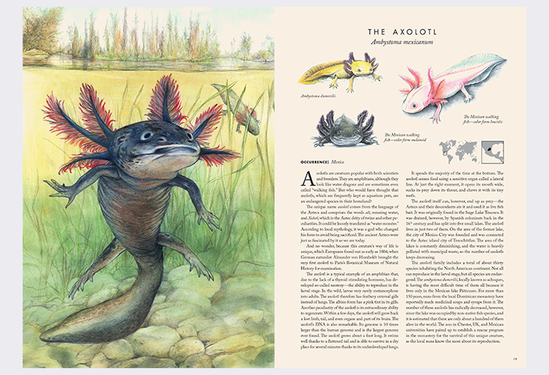 We are born, we live, we die, and we loot our planet. We pollute it, mine it, cut down forests, and transform them into arable land. We pump out groundwater as well as raw materials . . . Entire lines of threatened species, however, are dying before our eyes. Do we want to continue like this? Atlas of Endangered Animals maps out the dangers that specific threatened species face. The writer Radek Malý encourages people to think about their actions. The ambitiously conceived atlas is accompanied by remarkable fullpage illustrations by Pavel Dvorský, supplemented by scientific illustrations by his wife Pavla Dvorská. These are stories of forty species whose ongoing existence rests in our hands.