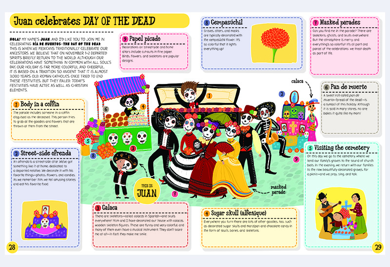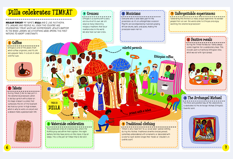 Are you curious how people make merry in other countries? Good company, great food and drink, and most importantly, lots of fun—we all like celebrating holidays! But have you ever wondered how people spend holidays across the world? Together we’ll join in with many celebrations, all of them different. What’s Halloween like in Ireland, and Timkat in Ethiopia? What are the customs observed at Hanukkah? You’ll make new friends who’ll tell you all about their culture. Ready to explore? It’s party time all over the world!