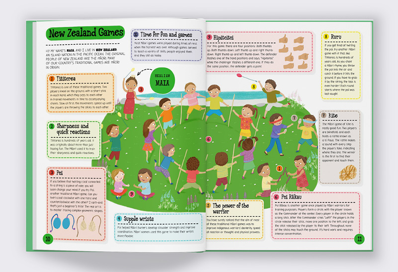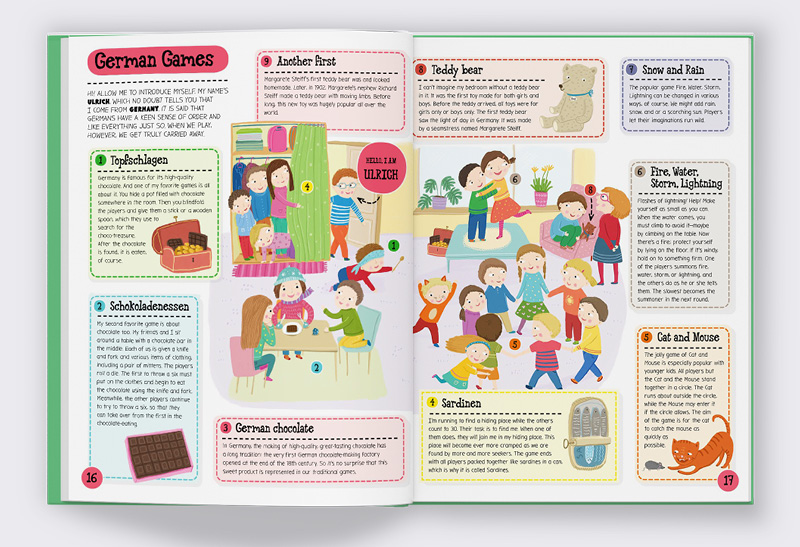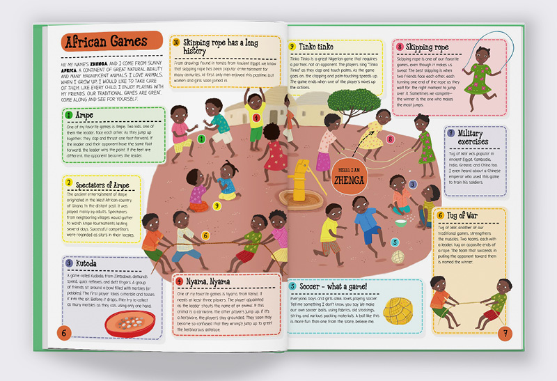 Structure: Every spread is dedicated to games and leisure activities in certain country or geographical area.