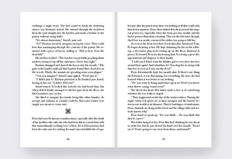 This young adult mystery horror takes us to a remote borderline village in an intentionally unspecified place and time where people still live by their own rules and still believe in old gods. Twelve years ago, four children suddenly disappeared without trace. Now during the winter solstice, three of them returned out of nowhere as teenagers with no memory of what happened to them. Astrid, Tom and Sonja have to unite to face the prejudice of the villagers and to find out, what happened to them and where the fourth missing child is—Astrid’s brother Max. Twelve nights after the winter solstice is the most dangerous time of the year as the border between human world and underworld is thin. And the kids—now adults—will discover that the ghosts from their nightmares are real and waiting for them.