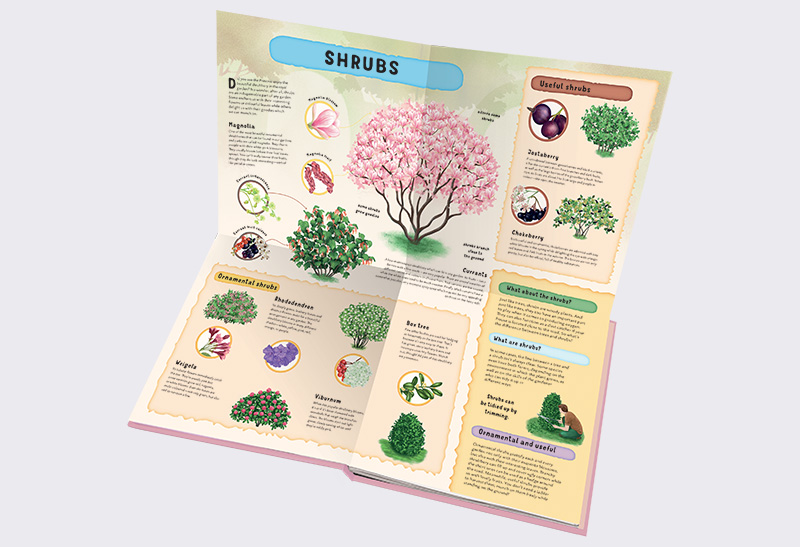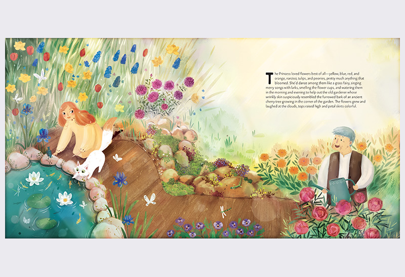 Far, far away after crossing nine mountains and nine rivers lived a charming princess Sleeping Beauty and her great passion was gardening and taking great care of all plants that surrounded her palace. The princess was cursed when she pricked her finger on a thorn one day. She fell fast asleep, and the entire garden became shrouded in brier roses, hawthorn, and weeds. How will the charming princess save her garden? Discover the princess’s story, and find out about the wonderful world of gardening with this richly illustrated book with seven gatefolds on each spread.