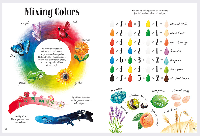 Nature is teeming with incredible colors. But have you ever wondered how the colors green, yellow, pink or blue might taste or smell? What could they sound like? Or what would they feel like if you touched them? Nature’s colors are so wonderful and diverse they inspired people to use the names of plants, animals, and minerals when labelling all the nuances. Join us on a journey to discover the twelve most well-known colors and their shades. You will learn that the colors and elements you find in nature are often closely connected. Will you be able to find all the links in each chapter? And if you are an aspiring artist, take our course at the end of the book and you’ll be able to paint as exquisitely as nature itself does!