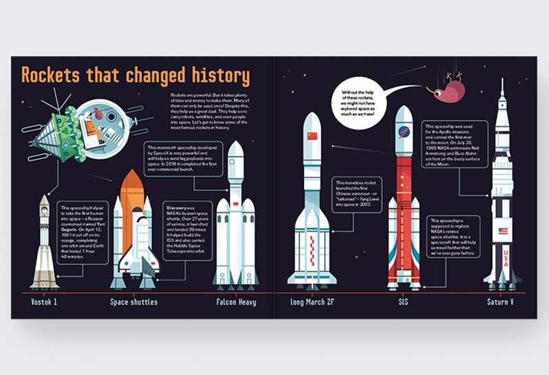 Is space the number one topic you’re interested in? Would you like to learn what breathtaking objects and man-made machines are flying around out there? Would you like to become an astronaut and see everything with your own eyes? Karl the kiwi bird is interested in just that. His biggest dream is to visit space as an astronaut. Together you’ll learn many interesting things about all kinds of spacecraft. You’ll meet the most famous types and also catch a glimpse of what goes on before you even get to go to space—astronaut training and liftoff included! Join Karl in his spacecraft, get to know the solar system, and even more! Who knows what is hiding beyond our galaxy . . .
