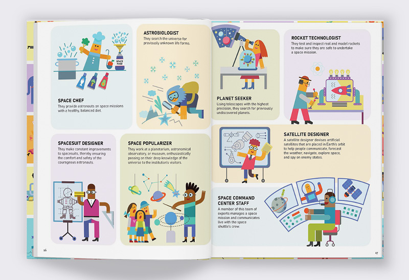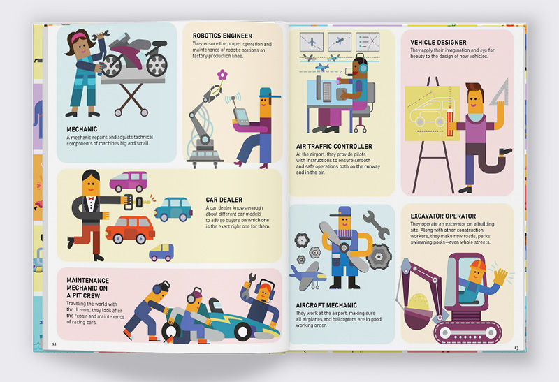 Everyone has one or more hobbies. Everyone is a unique person with a specific character. This creates our personality and can route us to our future career. Express yourself by your job! Based on their interests, kids can skip to pages with the most appropriate and diverse jobs they can do in the future. For example: if a kid loves drawing and making things, it can be a painter, of course, but also a tattoo artist, a visagiste, a restorer, or even a scenographer! Is the kid interested in animals? Then a veterinarian is not the only suitable job. What about a wildlife photographer, a zookeeper, an animal trainer for people with disabilities, or a wildlife rehabilitator? Fourteen interests hide many possibilities what to do. Will you find your dream job?