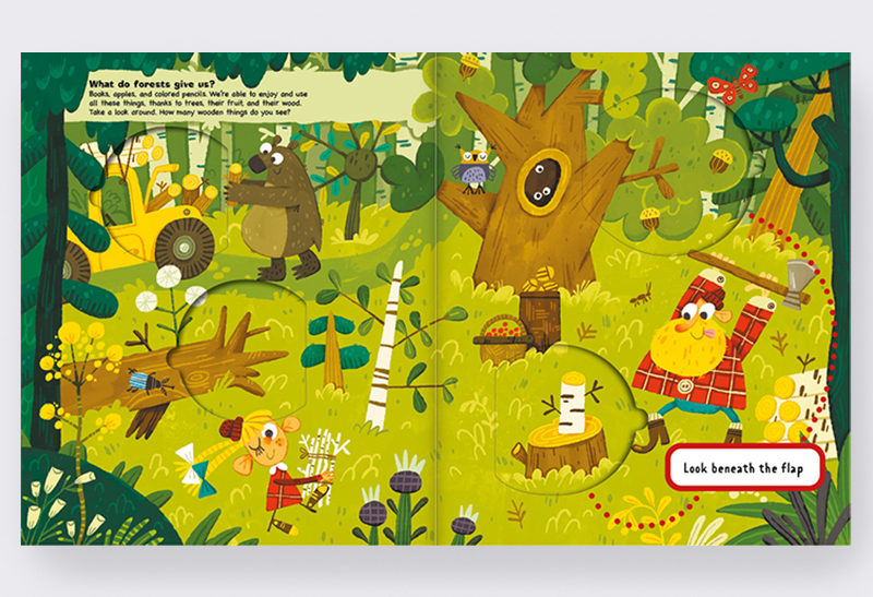 Look under the flaps and find out what does nature give us. Have you ever wondered, how long does a tree grow before it becomes the chair you’re now sitting on? Or how did cow’s milk turn into the ice cream that cools you off in summer? Explore the origin of things we use in everyday life.