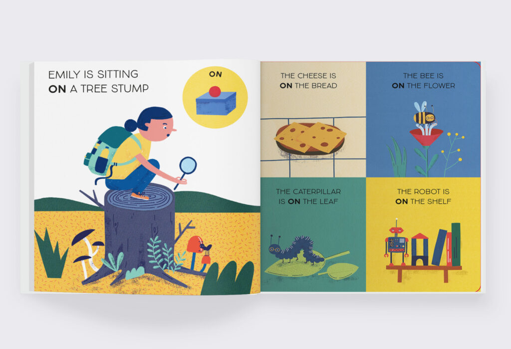 Oh, the prepositions. Where is this and where is that? Is it on, in, under or above? I could never get it right. But luckily, prepositions and I are friends now. Do you want to learn them, too? I’ve got a great book for you. It’s called In, On or Above? Let’s Learn Prepositions.