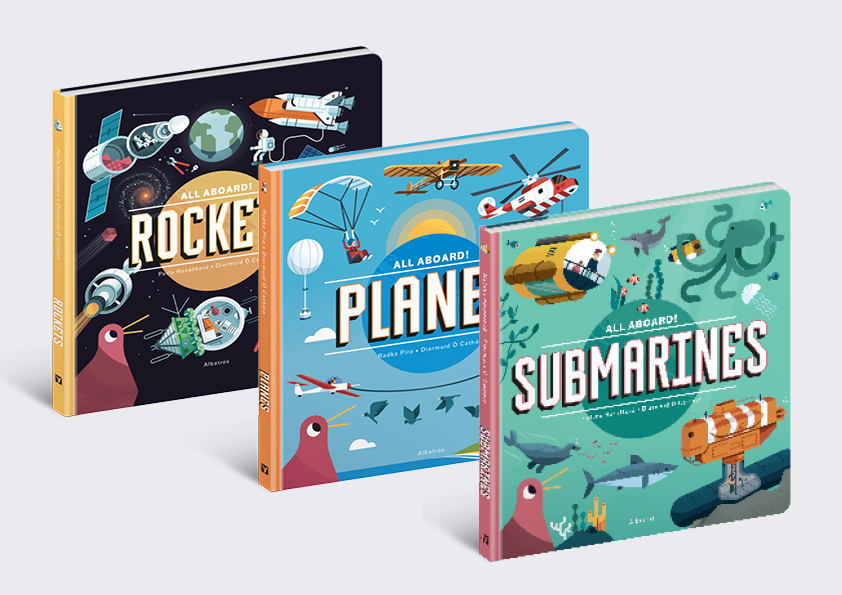 All aboard! is a vibrant series that makes a great companion for any budding oceanographers or pilots out these. These titles are a great introduction into the fabulous world of machines as well as the places they can be found at.